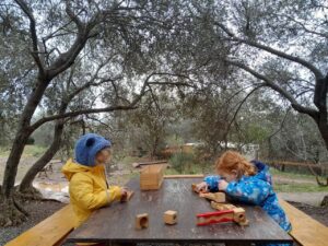- Autonomia di movimento in ambienti naturali come il bosco, avendo la presenza dell’adulto solo in qualità di sostenitore e accompagnatore.